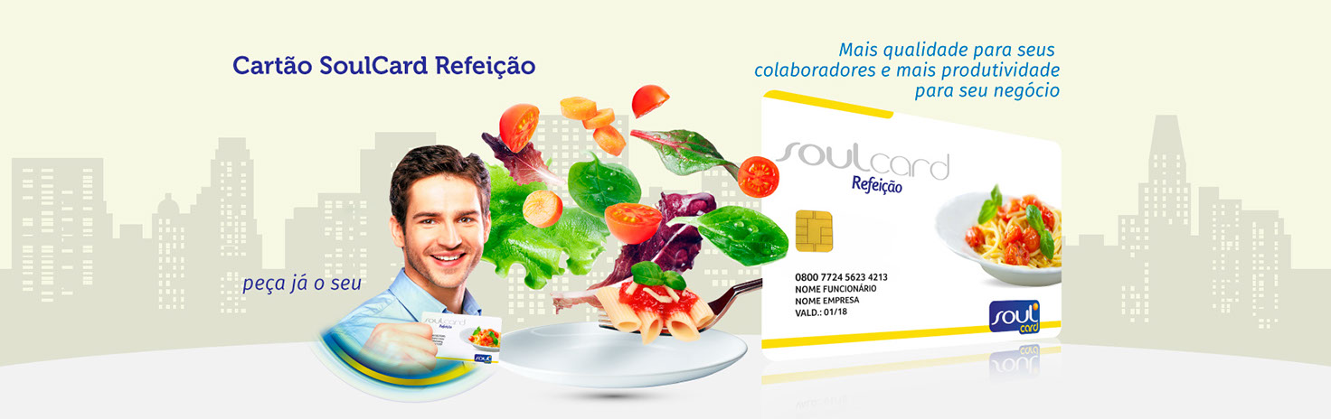 A Soul Card oferece um completo pacote de serviços integrados que aumentam a comodidade e facilidade com muitos benefícios e vantagens para seus colaboradores, como alimentação, compras, convênio e refeição.